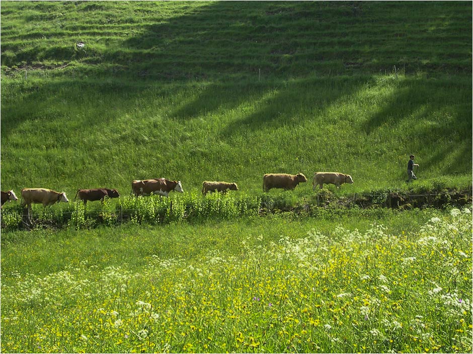 Mit dem Gras von den Naturwiesen, füttern wir unsere 20 Mutterkühe mit ihren Kälbern.
